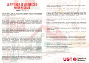 UGT Servicios Públicos sitúa el derecho a la vivienda en el centro del debate social con la campaña de abril de 2026, en la que denuncia la creciente mercantilización del acceso a la vivienda